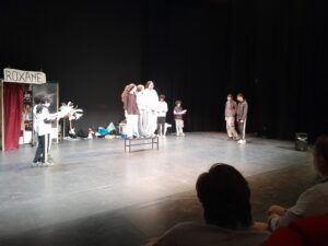 La semaine du 20 au 24, les 401 et 403 ont réalisé 9 heures d’ateliers théâtre en demi groupe avec un.e comédien.ne de la CieGerm36 sur les thèmes « Roxane » de « Cyrano de Bergerac » d’Edmond Rostand et « Elvire » de « Dom Juan » de Molière. Progressivement, le stress a laissé place à un vrai plaisir de jouer.