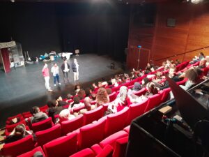 Vendredi 24 avril, au Théâtre Kantor, les élèves ont fait une présentation du travail réalisé au cours de la semaine devant un public de parents, mais aussi devant Didier Richard, responsable du service des publics au Théâtre des Célestins, Mme Marie-Ange Poirier, responsable du Mécénat au Théâtre des Célestins et Mme Elise Chaney, responsable de développement culturel à la ville de Lyon.